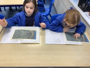 Today in geography, year 3 explored a map of Formby and used 4 figure grid references to locate key points.